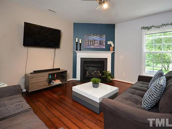 Beautiful stone-front home with FABULOUS kitchen and PRIVATE outdoor space minutes from Brier Creek and RTP! Large bedrooms with HUGE closets. Beautiful dark wood floors on main level. Sparkling white granite countertops and island, tile backsplash, new stainless steel appliances, large walk-in pantry, and spacious breakfast room provide an exciting space for cooking and entertaining. Lush backyard with patio, fire pit sitting area, and landscape lighting provide a wonderful private outdoor living area.