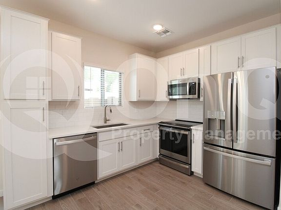 This newly built 3-bedroom, 2.5-bath home spans 1,560 sq. ft. and offers modern living all on one level. Located in the desirable 17 North neighborhood. The spacious kitchen comes fully equipped with stainless steel appliances, including a refrigerator, dishwasher, microwave, and oven, plus a water RO system. The open floor plan includes a welcoming living room, ideal for entertaining. The primary bedroom features an ensuite bathroom with dual sinks, while the secondary bedrooms are generously sized with ample closet space. A washer and dryer are included for your convenience. Outside, you'll find a low-maintenance backyard with plenty of space for outdoor enjoyment. This home also features a water softener, garbage disposal, and access to a community pool, perfect for relaxing or staying active. Conveniently close to local parks, shopping, and dining.