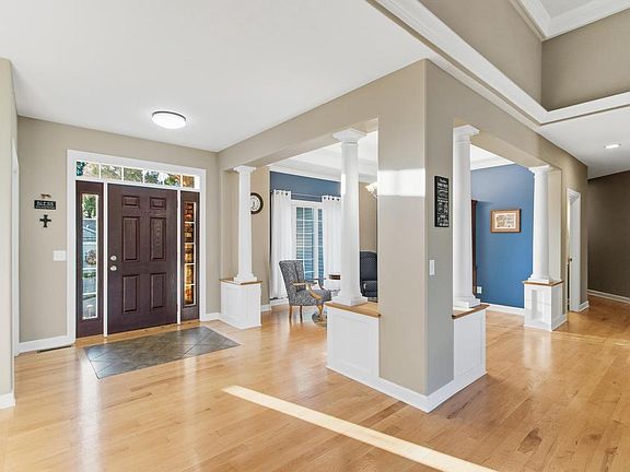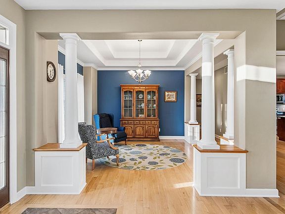 Come see this wonderfully maintained 5-bedroom, 3.5-bath ranch home w/ a walkout lower level! The bright, airy living room features a stunning coffered ceiling, custom bookcases & a gas fireplace. Offering both a formal dining room and eat in kitchen, the kitchen is open with granite counters, breakfast bar & cherry cabinets. The split bedroom design includes a primary suite w/ private bath and a Jack & Jill bath shared by two bedrooms. The lower level features a spacious rec room, two additional bedrooms, full tiled bath & versatile bonus room. Enjoy a composite deck & a stamped concrete patio overlooking the beautiful backyard. The heated 3-car garage with epoxy floor, drain, and stairs to basement will be a favorite! Continuous edging, tray ceilings & sprinkler system! Call now!