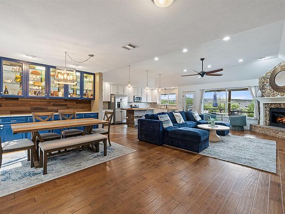 Charming single-story retreat nestled in the heart of Lago Vista, just moments from the north shore of Lake Travis. This thoughtfully designed 3-bedroom, 2-bath home with office offers a spacious and inviting layout, perfect for everyday living and effortless entertaining. Step inside to discover an open floor plan anchored by a grand stone fireplace, rich wood flooring, and soaring ceilings that fill the space with warmth and light. The kitchen is both stylish and functional, featuring granite countertops, stainless steel appliances, and a center island that's perfect for gathering. The primary suite offers a peaceful escape with a double vanity, walk-in shower, and generous storage. Stepping into the fully turfed backyard, a large covered deck sets the stage for al fresco dining, outdoor entertaining, or simply unwinding and enjoying the sunset after a long day. Set in the scenic lakeside community of Lago Vista, residents enjoy access to a wealth of amenities through the property owner's association including lakeside parks, a marina, swimming pool, fishing well, sports courts, hiking trails, and more. (POA membership required; additional fees may apply please see POA docs for details.)