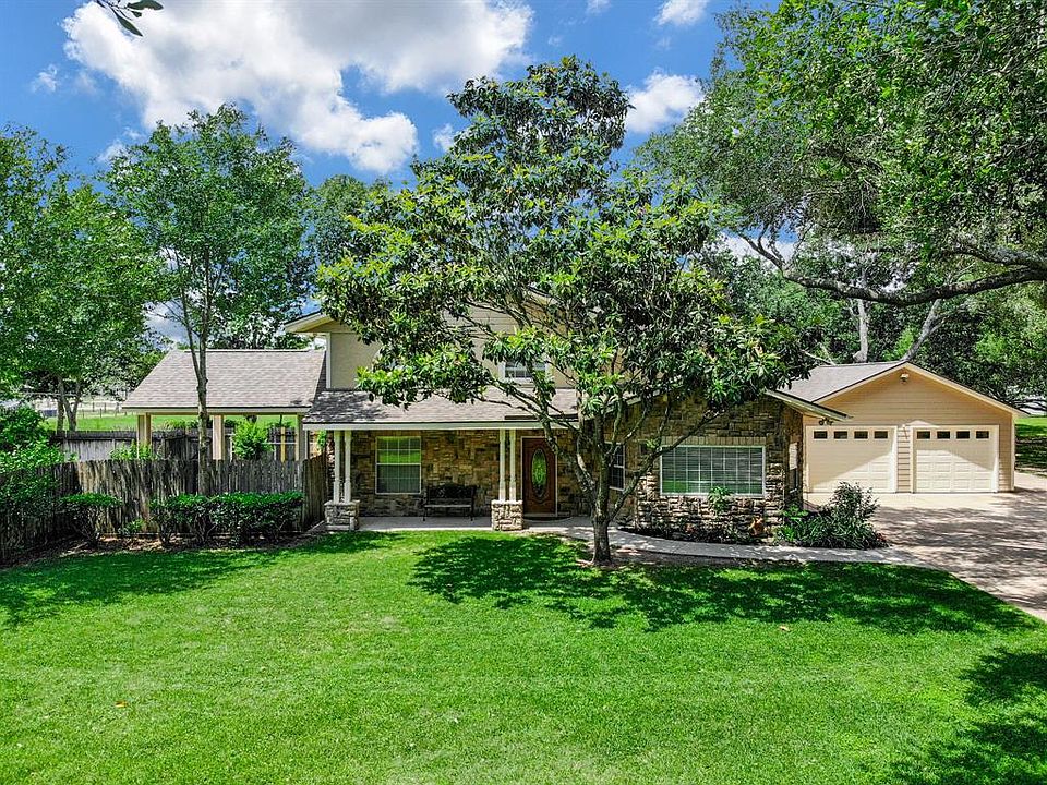 Wonderfully maintained and updated 3 bedroom 2.5 bath home with .86 of an acre of land with a pool and covered patio located on a secluded dead end road. NO HOA, NO MUD and a total tax rate is a low 2.14. You also have plenty of breathing room between neighbors. This home features an updated kitchen addition with upgraded appliances, large dining area perfect for all your family gatherings, oversized detached 2 car garage(24' deep and wider entry doors), recent paint inside and out, mature landscaping including large oaks lining the property, generous game room and bedrooms upstairs, loft area perfect for a home office, extended game room area could easily be converted to a 4th bedroom and so much more. Call for your private showing.