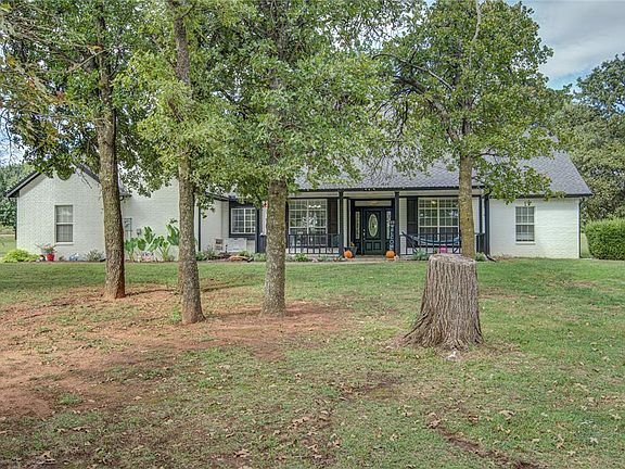 Welcome to your dream farmhouse in the peaceful Four Lakes neighborhood! Set on a beautiful corner 1.95-acre wooded lot, this updated 5 bed, 3 bath/ 3 car garage home perfectly blends modern comfort with rustic charm. As you enter, you’ll find a bright and airy openliving space that flows seamlessly into the spacious kitchen, making it a fantastic spot for gatherings and entertaining. The kitchen is a dream, featuring a gas stove, custom cabinets, plenty of granite countertop space, a central island, and sleek stainless steel appliances. The primary bedroom is complete with a vaulted ceiling and an en suite bathroom that features dual vanities, a relaxing jetted tub, a large shower, and a generous walk-in closet. The secondary bedrooms are also spacious and flexible, perfect for whatever your needs may be. Plus, there's a bonus or flex room that can serve as a home office, playroom, or extra guest space. The laundry room comes with custom storage solutions to keep everything organized. Step outside to your backyard, featuring a storm shelter for peace of mind, a covered patio, and an open deck—ideal for enjoying warm evenings and picturesque countryside views. Don’t miss the chance to make this stunning farmhouse your forever home—schedule a showing today!