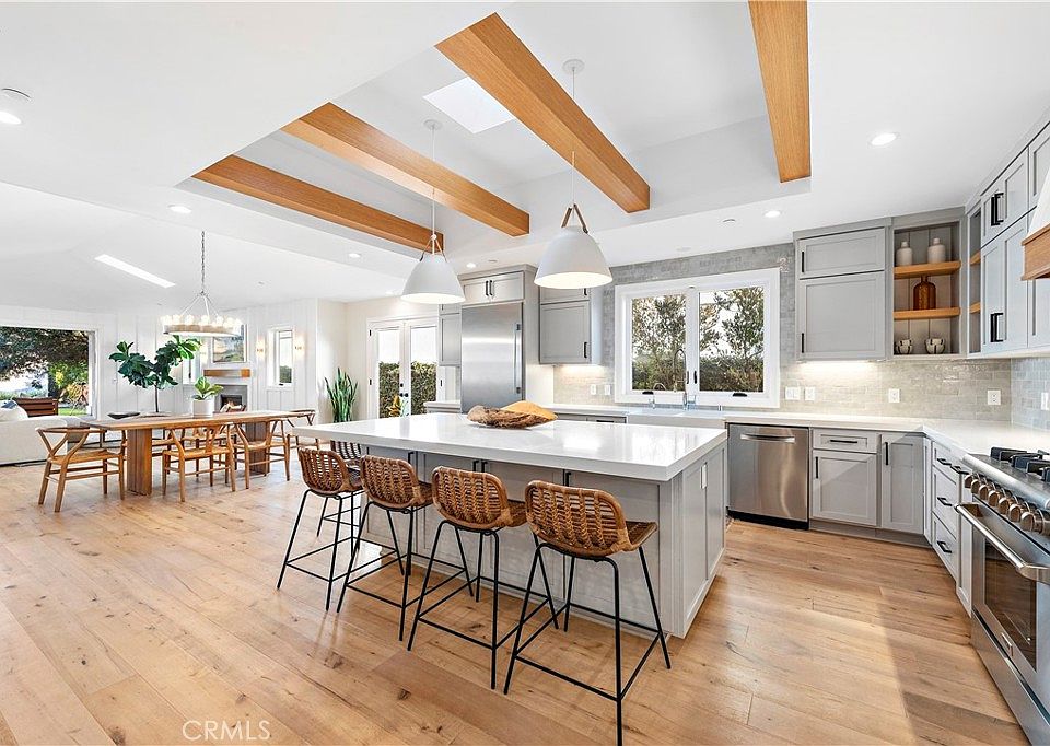 Custom 2020 build perched on a sprawling 9,000 SqFt lot. This 2,900 SqFt residence includes an ADU with bifold doors, full kitchen, laundry and bath. A masterpiece with Brooke Wagner’s personal touches boasting an open concept living area with high ceilings leads you through the bifold doors into the warm and inviting California Room with fireplace. Main home consists of 2 ensuite bedrooms, a master suite with large walk-in closet and soaking tub, powder room, laundry room, and aw-inspiring space for entertaining. Features include fully owned Vivant solar panels, white oak flooring, fireplace, security system, custom window treatments, tankless water heater, custom hidden in-wall media storage with Samsung The Frame TV and Sonos Amp and built-in speakers. Entertainer’s kitchen consisting of Thermador and Thor appliances, custom cabinetry, large island with extra storage and bar stool seating. The manicured yard will host the finest moments for your family and gatherings, and also provides plenty space to add a pool. Welcome home.