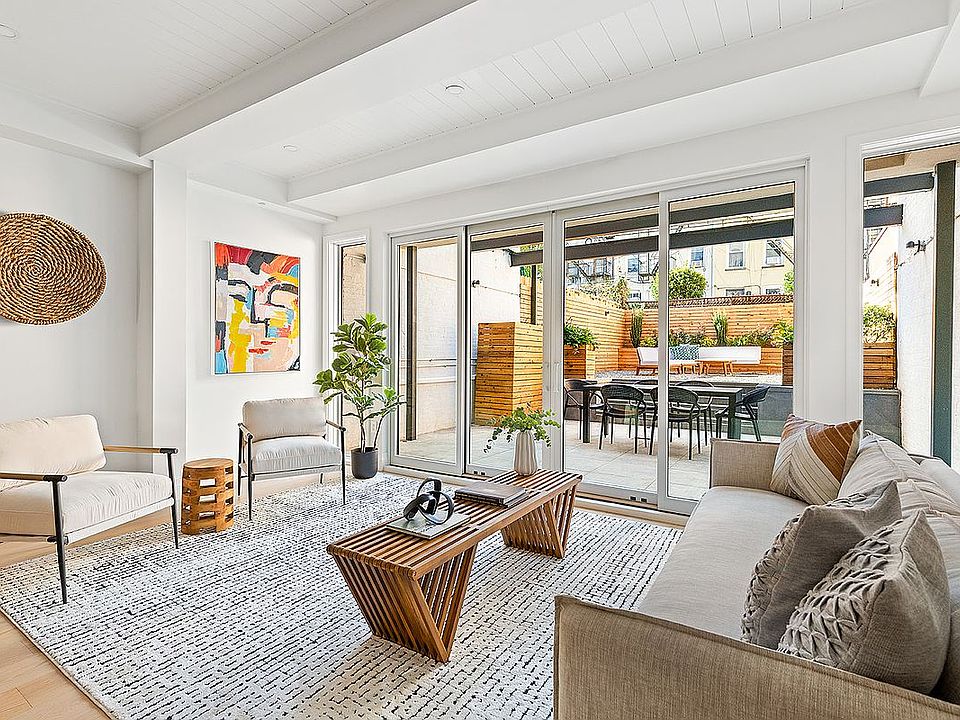 Set within a completely reimagined boutique Carriage House in the heart of Park Slope, this bespoke duplex residence offers two full floors with three bedrooms, two and a half custom bathrooms, and over 800 square feet of private outdoor space, including a fully landscaped garden and an additional terrace on the second floor. Oversized glass at every exposure fills the home with streaming natural light and serene views.