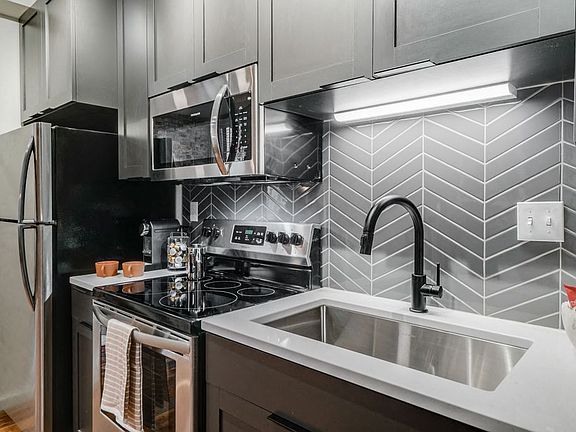 Stylish countertopsSleek modern finishesHigh ceilingsSpacious bedroomsNatural lightStainless steel appliancesWell-appointed bathrooms