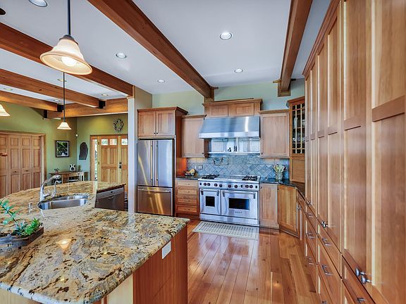 If you’re looking for spectacular views, amazing sunsets and easy access to year-round recreation, this could be your happy place. This contemporary custom home with log accents and glass deck panels features an open two-story great room and dining room, chef’s kitchen, main-floor master, covered porch with fireplace, fenced yard with mature landscaping, fire pit and horseshoe pit, all with jaw-dropping views of the Pend Oreille River and the mountains beyond. Fiber optic internet allows for a great work-from-home opportunity, and the 3-car garage with heated shop bay is great for hobbies. Located just outside Newport, Washington and Oldtown, Idaho, this custom home on 6 acres is just minutes from Bead Lake, Marshall Lake and the Pend Oreille River. 30 minutes to Lake Pend Oreille and Sandpoint, Idaho; 60 minutes to Spokane and the airport; 45 minutes to skiing at 49 Degrees North; 60 minutes to Schweitzer Mountain.