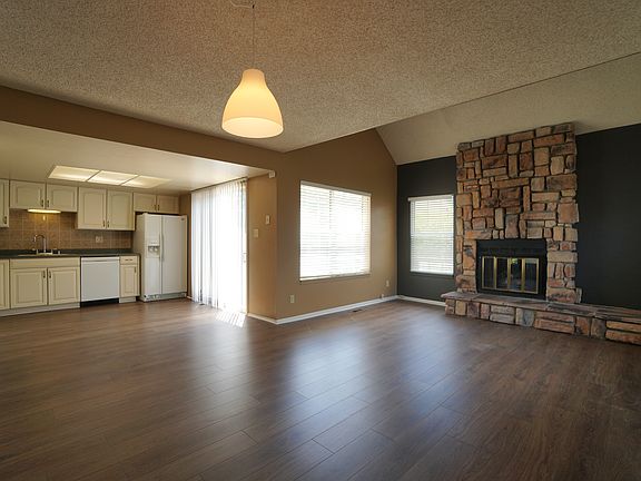 Gorgeous Townhome with new luxury vinyl planking and new carpet. Walkout from kitchen to beautiful landscaping and community pool. Floor-to-ceiling stone fireplace in living room with vaulted ceilings and amazing natural lighting. Central Air Conditioning! Upstairs with master bedroom and newly remodeled bathroom with double vanity, loft area, and walk-in cedar-walled closet. Main level bedroom with full bathroom. Basement with bedroom and bathroom, laundry room including washer/dryer, wet bar, and large family room with built-ins. Plenty of storage space. Garage and assigned space. Corner unit. Don't miss out on this one!