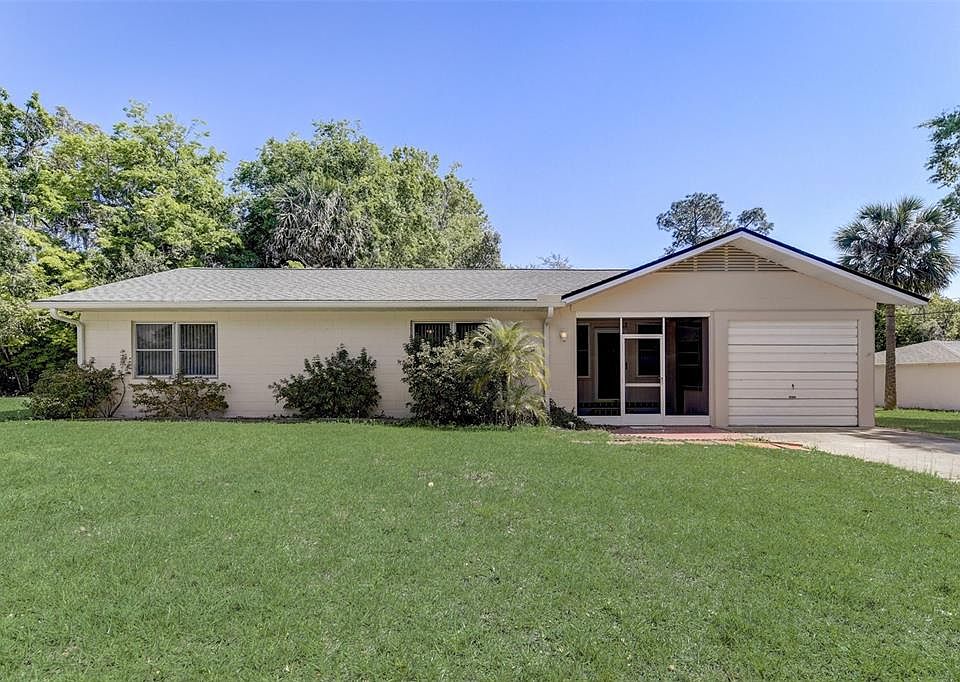 Get Ready to fall in love! Situated on just over a 1/2 acre corner lot in a peaceful neighborhood in the sought-after city of DeBary. This property offers a perfect blend of comfort, functionality, style, and convenience, creating an ideal living space. Step inside to find a spacious and well-designed interior with 2 bedrooms, 2 bathrooms, and generous living areas, providing ample space for relaxation and entertainment. Enjoy your private outdoor oasis, where you'll find a patio with a retractable awning, a spacious backyard, perfect for outdoor dining, gardening, and enjoying the Florida weather. This home boasts upgraded features throughout, including paint, carpeting, new roof 2023, water heater 2022. With its well-maintained condition and thoughtful upgrades, this home is move-in ready, allowing you to start enjoying the Florida lifestyle right away. Don't miss the chance to make it your own. Schedule a showing today and experience Florida living at its finest!