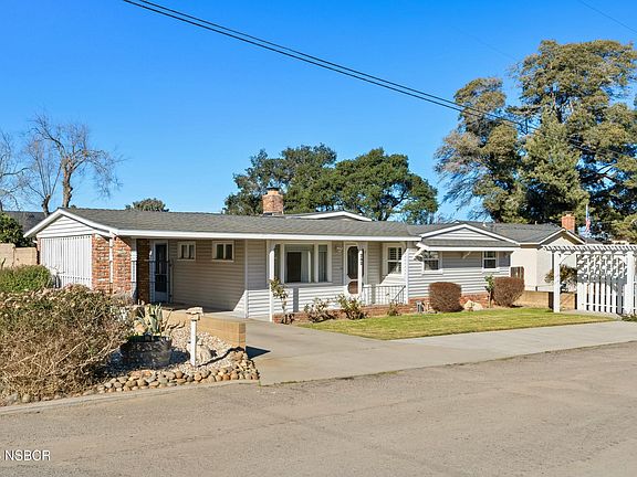 Nice One Story ORCUTT AREA HOME With CHARMING PRIVATE ROAD LOCATION. This Unique Location Gives You Kind Of An ''Old Town Orcutt/Country Living' Type Of Feeling. And The New Owners Can Just Walk Down To Chef Rick's/Jetty For A Romantic Dinner Or Melody Market For A Few Items. This Nice Home Has A 3rd Bedroom Option, 2 Bathrooms, Approximately 1,603 Square Feet Of Living Area, On An Approximate .14 Acre Lot In The Orcutt School District, A Detached Garage Building With ADU POTENTIAL, A Gated Driveway With Covered Parking Spot And A Big Back Yard Fruit Tree. No HOA Fees! Property Features Include; Welcoming Covered Front Porch Entry Into Comfortable Front Living Room With Bead Board Wall Cover, Attractive Light Color Paint Design And Big Front View Window. Relaxing Back Family Room Or 3rd Bedroom Option, With Built-In Cabinet/Shelves, Recessed Lighting, Ceiling Fan, Courtyard View Windows With Plantation Shutters, Nicely Textured Walls & Ceiling With Light Paint Design And Soft Carpet Flooring. Nice Kitchen With Handsome Wood Cabinetry, Including Lovely Glass Front Upper Cabinets, Built-In Kitchen Desk, Stainless Steel Sink, Smooth Surface Counter Tops, Gas Stove/Oven, Laundry Closet And A Beautiful Dining Room That Has Majestic Full Wall Brick Fireplace, A Gorgeous Exposed Wood Ceiling With Hanging Chandelier, Courtyard View Windows And A Beautiful Wood Floor. Two Lovely Bedrooms With Vaulted Painted Wood Ceiling & View Windows With Plantation Shutters.