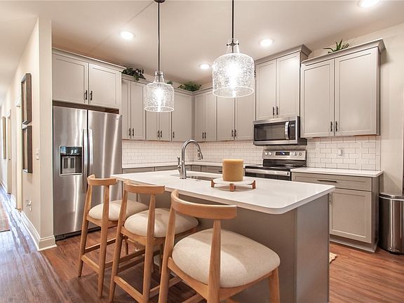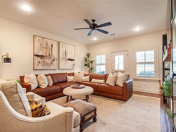 Upgrades Galore! This stunning end unit home (for more privacy) features plantation shutters, upgraded lighting, a fireplace, and a private fenced backyard. The main level boasts a kitchen with stainless steel appliances, granite countertops, a pantry, plus a dining room, living room, laundry, coat closet, and two bedrooms. The private primary suite offers a soaking tub, walk-in shower, double vanity, and large walk-in closet. The second bedroom has a private bath with a tiled tub/shower combo and dual closets. Upstairs includes a third bedroom with a private bath, a large rec room, walk-in attic, and mechanical room. Enjoy a covered patio, irrigation system, and one-car garage. Located minutes from Auburn University, I-85, dining, and shopping. Select Matthison Interiors furnishings are available for purchase! No carpet. All LVP and Tile. Energy Efficient Windows. Walk in Attic for lots of storage. So stunning, it could be in a magazine! Schedule your private showing today!