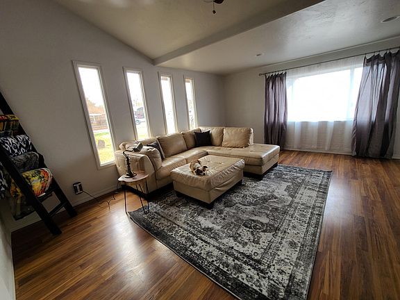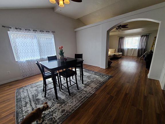 This 3 bedroom, 1771 ft home is move-in ready with newly installed hardwood floors throughout. The updated kitchen has a center island with a large refrigerator, microwave, electric range and oven, dishwasher, and disposal. Plenty of storage provided in the pantry. The spacious dining room is open to the living area, both with vaulted ceilings. The large master bedroom maintains the vaulted ceiling and has a large adjoining tiled jetted bath, walk-in shower and double sinks. There are 2 more bedrooms and a full 2nd bath, also with double sinks. Off the kitchen is a separate laundry room, which includes a washer and dryer and is spacious enough to provide more storage. That leads into the 2 car garage which is accessed from the back of the property. The large backyard is viewed from a covered patio. There is ample parking for guests and a convenient drive-thru driveway in the front of the home. The xericaped front yard is easy to maintain. Grocery stores and restaurants are nearby and easy access to mountain bike trails, the Colorado river bike trail, and the community center.