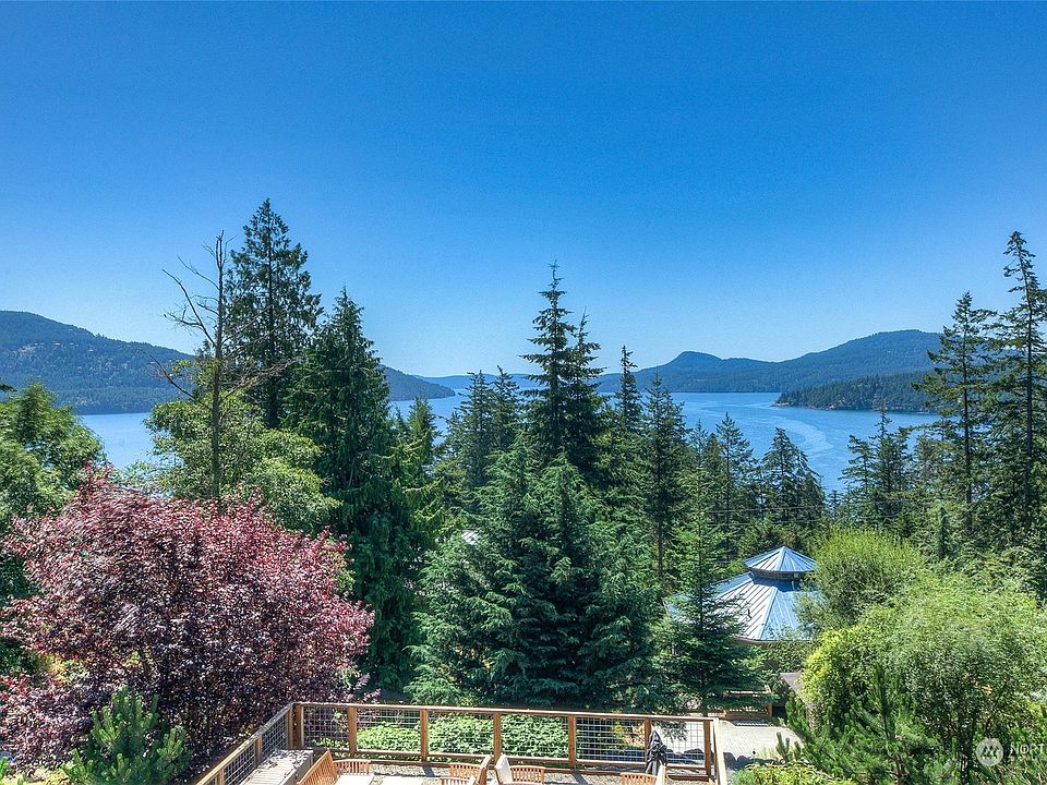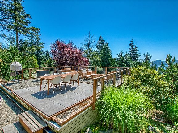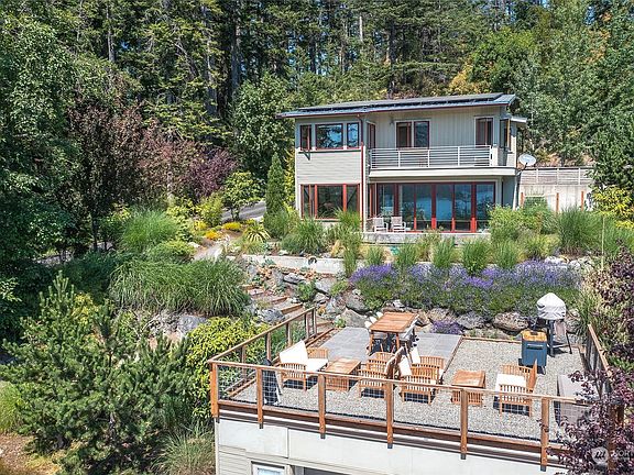 Elegant and bright 3 bedroom, 2 bath 1700 sq. ft. home on .42 acres near Eastsound Village. This modern Pacific Northwest contemporary design is filled with sunlight and warm fir trim details creating an inviting and relaxing home. Paths, patios and decks allow you to fully enjoy this property. Mature and lush gardens lead to a rooftop deck for outdoor dining and entertaining located over a detached two car garage. Enjoy this peaceful and convenient location near town with all of the Eastsound Village amenities. Nearby public waterfront park and schools. Features include: solar panels, radiant heat Marazzi porcelain tile floors and metal roof. Eastsound Sewer, Eastsound Water, high-speed interenet.
