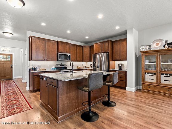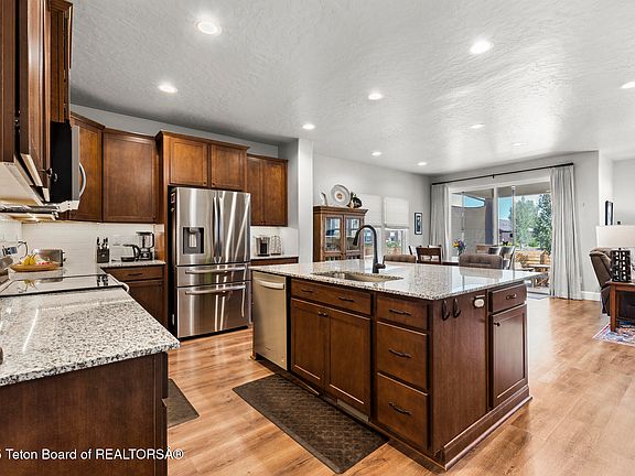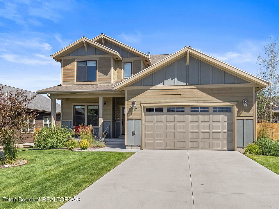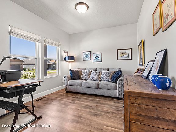 Wonderfully spacious and fully furnished Traverse model home in Teton Reserve just a few minutes from Victor. Nearly 2400sq ft total, with 1700 sq ft on the main level and a desirable first floor primary suite. 3bd/2.5ba, with a dedicated den or office, and second level living media or flex room. Open and bright kitchen/dining/living room with access to the covered patio and teriffic outdoor entertaining spaces. Fully landscaped with mature trees and fencing. Upgrades include central AC and a EV charger in the garage... Additionally, there is a full unfinished basement for additional bedroom/bathroom and gameroom. This well maintained and turnkey home is move in ready. Make a showing appointment today!
