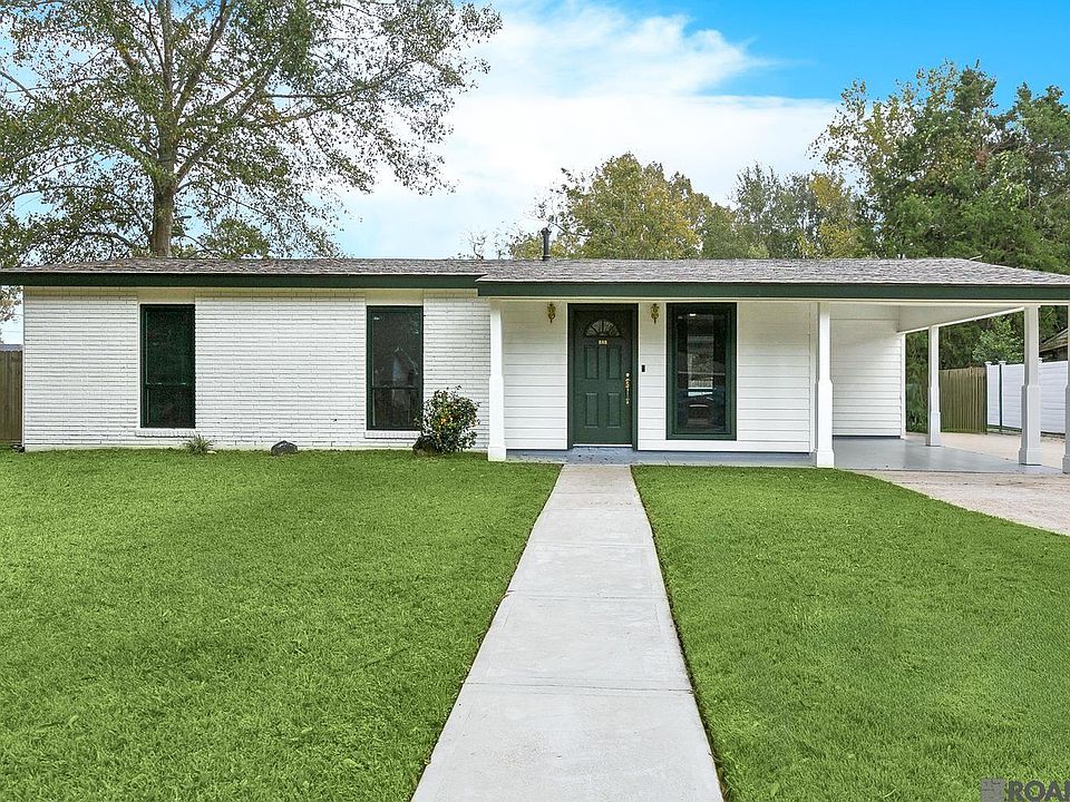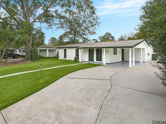 This is your opportunity to live in a highly desirable location just off Highland Rd. This completely updated 3-bedroom, 2-bath home is truly move-in ready, offering peace of mind and modern comfort at every turn. Step inside to beautiful tile flooring throughout, a stunning stone-tile fireplace in the spacious den, and a wall of windows that fill the home with natural light while overlooking the shaded, fully fenced backyard. The large covered patio creates the perfect setting for gatherings with family and friends. Both bathrooms have been completely updated, and the primary suite feels like a personal retreat with its double vanities, classic subway tile, and luxurious free-standing tub - your own spa-like sanctuary at home. The kitchen is the heart of the home, featuring granite countertops, updated cabinetry, and modern hardware. Outside, you’ll find a covered outdoor kitchen ideal for entertaining, as well as an above-ground pool for summer fun. Additional updates include all new windows, Hardie plank siding, new flooring, and a Ring doorbell with camera. The roof is only three years old. The home did not flood and is located in Flood Zone X. Every upgrade has already been done for you - just open the door, settle in, and start living your best life.