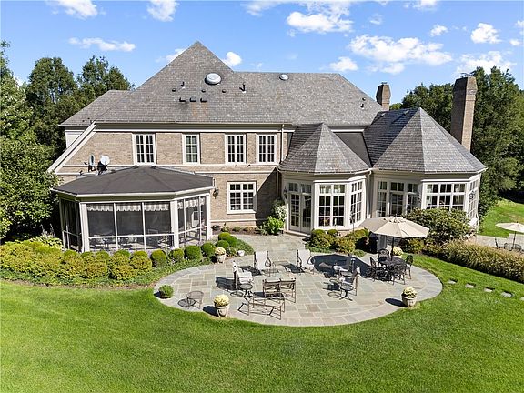 Welcome to this stunning brick and stone estate nestled on 7 acres of pristine, meticulously landscaped property. Step inside to a grand interior featuring hardwood floors with intricate inlay in the dining/ living rooms, crown molding, paneling, pocket and French doors, and a tray ceiling enhancing the sophisticated ambiance. The chef's kitchen is a culinary dream with ample counter space, a butler's pantry, and prep room, ideal for entertaining. Enjoy the luxurious backyard with a screened-in porch and outdoor amenities including a sparkling private pool, tennis court, gazebo and beautifully landscaped gardens. Inside, you'll find a back staircase, thick mahogany doors, and a three-car garage. Entertainment is at your fingertips with a game room, wet bar with golf simulator, pool table, shuffleboard, sauna, and gym.