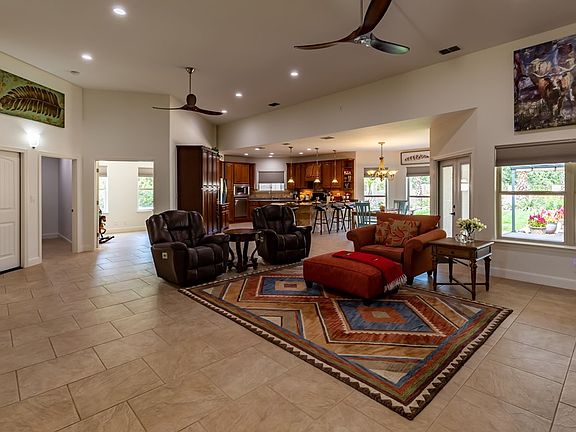 Beautiful custom home located on 1.46 acres in Lantana Ridge. Upon entering the home, you will notice the soaring ceilings in the entry & large open living room kitchen and dining areas. Windows across the rear allow beautiful natural light to fill these rooms. The kitchen is a gourmet delight w/ solid surface countertops, plenty of workspace & storage. The large owner's suite opens onto the back porch which features a hot tub & cov. patio, en suite bath with sep. shower/tub, & large walk-in closet. Two ample size guest bdrms located on the main floor. RV garage/shop 30x 40, RV hook ups.