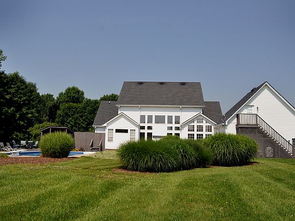 Update: This custom-built, 4,449-SF luxury home on 9.79 picturesque acres is not to be missed! Completely remodeled kitchen with granite, subway tile, all-new SS appliances. Tall banks of windows in living room & dining room maximize the sweeping view. Master suite on main level, plus 3 more very spacious bedrooms. Home office w/fireplace & built-ins. Home sound system included. In-ground pool w/patio deck. Privacy, tranquility, and luxury! Minutes to shopping & I-65. MUST see!!
