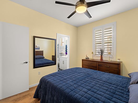 Both bedrooms with spacious walk-in closets and en suite. The master bathroom has double sinks. The master has a walk-in shower, and the spare bathroom has a shower-bath combo.