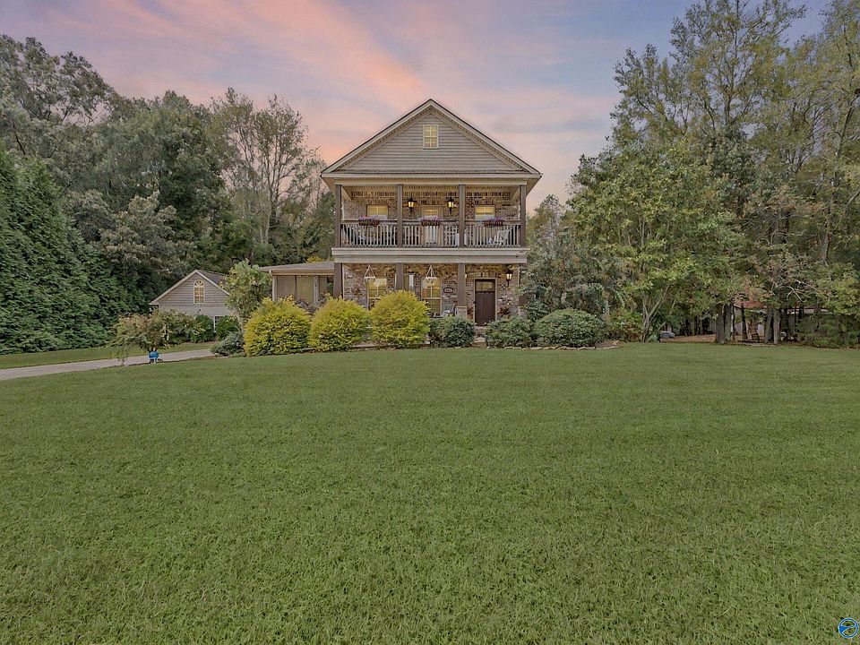 CUSTOM BUILT HOME ON 3+/- ACRES! This stunning 3350 sq ft property showcases exceptional craftsmanship with coffered ceilings & custom built-ins. Inside features include a wine cellar, media room with bar, loft with wet bar, & library. This dream kitchen has a Wolfe gas stove, oversized island & double fridges. Outside enjoy shaded pathways, creek access, breathtaking views, & multiple outdoor living spaces including a screened porch, balcony, grilling patio, & koi pond. The detached 1200 sq ft apartment with covered patio is perfect for guests or rental income. Additional amenities: 30x11 workshop, 20x30 barn, two 30x11 lean-to, hobby room & storm shelter. A TRULY EXTRAORDINARY PROPERTY!