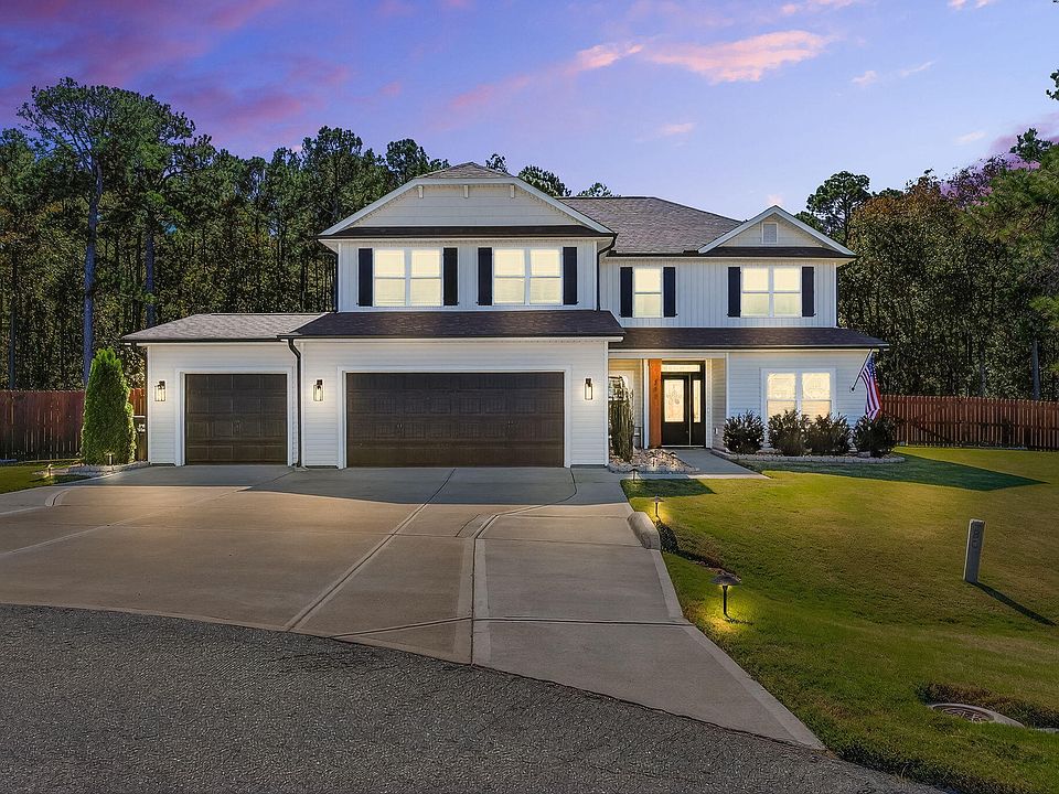 Tucked away in a peaceful culdesac, this one of a kind, upgraded home offers the perfect blend of elegance, comfort, and functionality. Landscaping perfection greets you as you pull into the spacious 3-car garage driveway, setting the tone for what awaits inside. Step into the open concept floor plan, thoughtfully designed with LVP flooring, granite countertops, and shaker style cabinetry accented by a timeless white subway tile backsplash. The kitchen is a true showstopper, featuring a massive island with built in cabinetry perfect for entertaining or extra storage. The formal dining is convenient for entertaining adjacent to the chefs kitchen. The spacious primary suite is conveniently located on the main floor, highlighted by a beautiful green accent wall, large walk in closet, and luxurious en suite bath. Upstairs, you'll find four additional bedrooms, a bonus room, and a loft, offering flexible spaces for work, play, or relaxation. Step outside to enjoy exterior landscape lighting, or unwind in your partially fenced, private backyard, complete with an outdoor speaker system and a huge patio ideal for gatherings or quiet evenings under the stars. This home truly has it all style, space, upgrades, and a location that can't be beat.