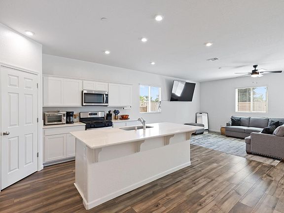 Discover the charm of the Camellia plan, a single-story home with 4 bedrooms, 2 baths, and 1,717 sq. ft. of stylish living space, built in 2022. The open-concept layout showcases a beautiful kitchen with white cabinetry, quartz countertops, a center island, and corner pantry, all flowing into the great room and dining area. The spacious primary suite features a private bath and walk-in closet, while three secondary bedrooms offer versatility for family, guests, or an office. Thoughtful details include vinyl plank wood flooring in main traffic areas, a valet entry off the 2-bay garage, and a convenient laundry room.