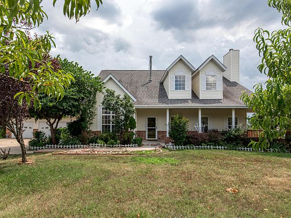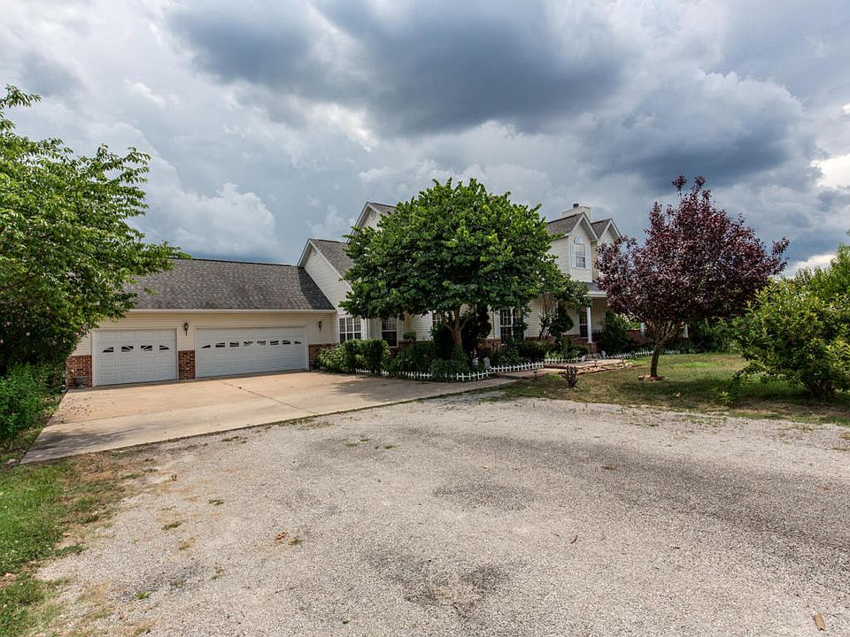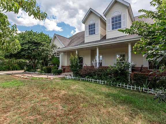 Beautiful 4 bed, 3 bath home with basement, seated on 5 beautiful acres. Close to Branson West and Reed Springs. Home greets you with a large covered front porch & walks into a large open floor plan featuring a foyer, formal dining, raised ceilings in living room with large niches containing windows for extra lighting. Living room also includes a wood burning fireplace & a wood stove. Kitchen/dining combo offers island, 2 large peek throughs into the living room, double oven & a vast amount of cabinet space, perfect for the family chef, plus a walk-in pantry. Spacious master suite offers tray ceiling, walk-in closet, master bath with his & hers sinks, jetted tub & walk-in shower. Large open basement features family room, 1 bed, 1 bath & an over-sized John Deere room with extra storage.