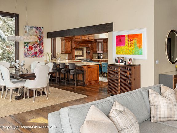This inviting 5-bedroom, 4.5-bath home blends comfort and connection with stunning mountain views. A spacious patio with an outdoor wood-burning fireplace encourages gathering. Inside, vaulted ceilings and expansive windows define the open living and dining area, showcasing the landscape. A gourmet kitchen offers table and bar seating for effortless hosting. The oversized primary suite features a private balcony, sitting area, and spa-like bath. A large front yard welcomes lawn games, while hiking, biking, world-class skiing, and Snowmass Village are nearby. More than just a homethis is a place to unwind, gather, and embrace the mountain lifestyle with ease.