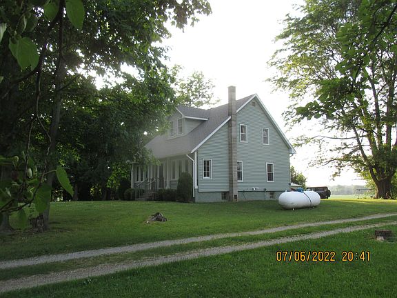 Picture-perfect country home on a rural, 2.5 acre lot with mature shade trees and circular driveway off the road. Full front porch glassed for loads of natural light. Updated interior and exterior in the past few years make this home in MOVE-IN CONDITION. Arts & Crafts style, modern conveniences like central A/C, generator hook up, updated electric, wiring & mechanicals. Ample storage throughout the home and walk-up basement (exterior entrance). Bright & airy interior, main level laundry area in the mudroom. Rear patio, garage workshop w/ work benches (metal is reserved). Picturesque yard & curb appeal galore. Move in without all the hassles of a remodel and enjoy country living just a few miles west of town. Kitchen appliances included. Call and see for yourself all this fine home offers