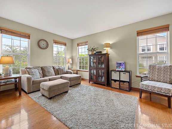 Fantastic Move-In Ready Townhome in Sought-After Windsor Pointe! Welcome to this beautifully maintained end-unit townhome filled with natural light from large windows throughout. Offering 2 spacious bedrooms and 2.5 bathrooms, this home is perfect for comfort and convenience. The open-concept main floor features a generously sized kitchen with newer appliances-including the range, microwave, dishwasher, washer, and dryer-flowing seamlessly into the dining and living areas. Enjoy hardwood flooring throughout the foyer, living room, and dining room. Upstairs, the large primary suite boasts a cathedral ceiling, walk-in closet, and ensuite bath. A spacious second bedroom with a large closet and a second full bath complete the upper level. Bathrooms feature updated lighting as well. Step outside to relax on the charming front porch or entertain on the back patio. The home is located on a quiet, no-through-traffic street and includes a 2-car attached garage with excellent attic storage. Enjoy walking distance to a neighborhood parks- with one having new access to the Virgil Gilman Trail-as well as nearby ponds, grocery stores, coffee shops, restaurants, and more! New Water Heater 2024. New Range, Microwave and Dishwasher 2023. New Furnace, A/C, Washer and Dryer 2019. Roof, gutters and downspouts replaced 2014. Schedule your showing today!