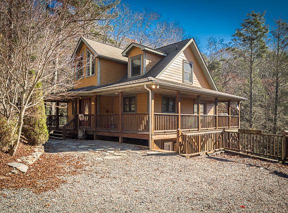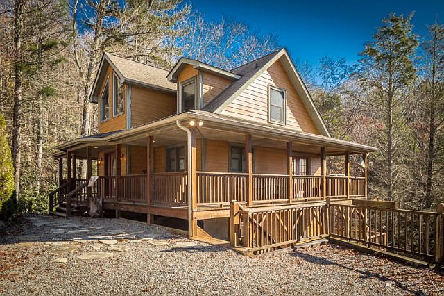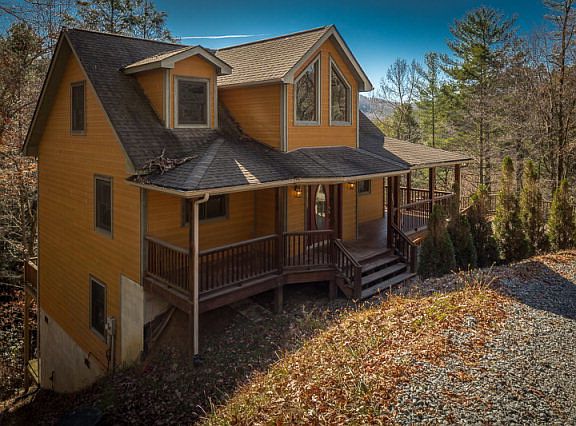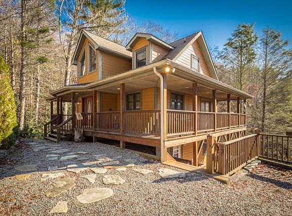 Mountain style three level home has a mix of rustic and modern finishes that provides the warm setting for family and friends to relax and yet has all the conveniences needed for comfort. From the vaulted entrance to the spacious kitchen and out to the half wrap deck, there's much to appreciate. Level entry floor has a spacious and open kitchen, beautiful fireplace, and master suite. The upper floor has two additional bedrooms, full bath, and loft area used as an inviting sitting area. The lowest level has another gathering space with a tremendous amount of beautifully finished flexible space that sellers use as additional sleeping areas, recreation room, den and there's even a second fireplace. Home is presently used as a vacation rental and second home but this well laid out space could be a lovely primary residence or your own mountain retreat. Subject to NC Vacation Rental Act.