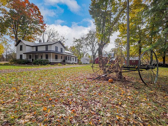 Outside you will find an old hip roof barn, with hay mow, tie stalls and a workshop area. There is a chicken coop, storage shed, and garden shed all with electric. The garden area is fenced and has asparagrus growing, and offers plenty of room to expand to grow your own vegetables, plant some fruit trees or raise some farm animals. Central air, high speed internet available, Shingled roof replaced in 2025. Easy access to M-89, centrally located between, Kalamazoo, Grand Rapids, and Holland.