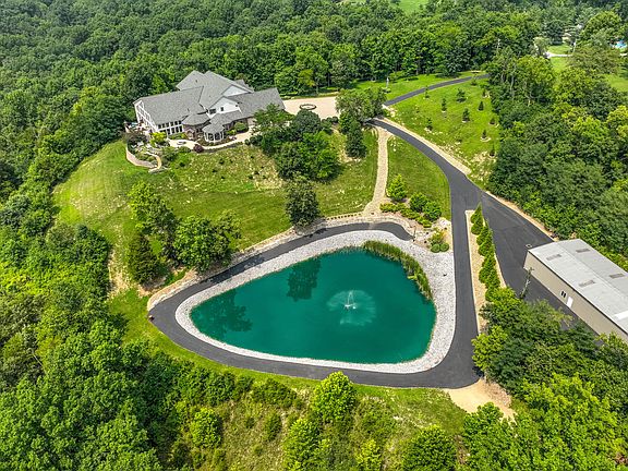 Perfectly peaceful paradise! Specifically understated elegance, this expansive estate feels as if it's perched in the clouds, nestled up on approximately 48 stunning acres with sweeping and inspiring views at every turn of the breathtaking countryside, wondrous pond and unrivaled sunsets! This classic and timeless custom designed home flows through three carefully curated levels which includes an indoor all-seasons resort-style extraordinary pool area. Designed and executed with attention to detail this home features uncompromising quality and appointments displaying remarkable craftsmanship, windows carefully executed throughout to capture the stunning views and natural light, soaring 20+ coffered and beamed ceiling, an impressive balcony, a true culinary kitchen with an abundance of prep and gathering space and direct access to the pool area, all generous rooms have ensuites with the primary suite on the first floor, an elevator and a lower level designed for an entertainer's dream. Also, a commercial size multi-use metal barn with water/electric, separate meter, 80x40. All with the convenience of being ~25 minutes to Downtown Cincinnati and CVG Airport. Truly exceptional!!