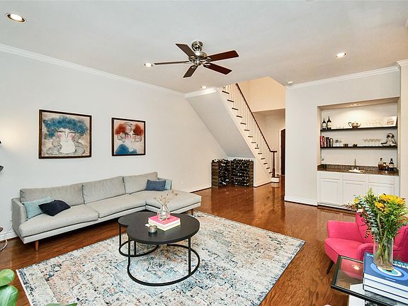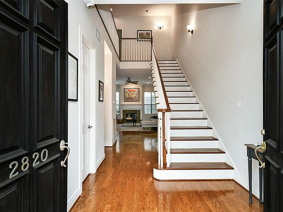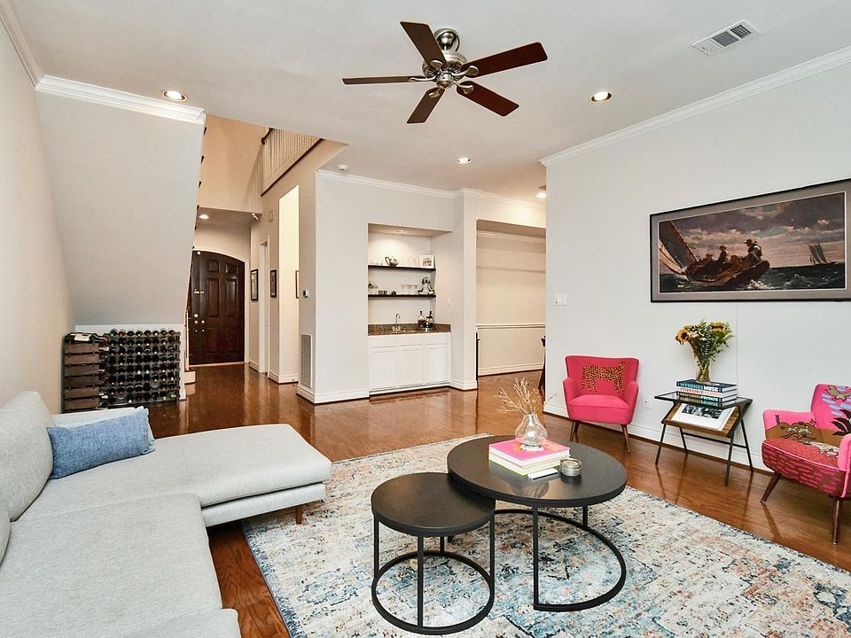 Welcome to 2820 Bering Dr. — a stunning end unit townhome in a gated community just off Westheimer & Chimney Rock, mere minutes from the Galleria. Step inside through double doors into a dramatic foyer with soaring ceilings, rich hardwood, and crown molding. The formal living area features a gas log fireplace, recessed lighting, and a wet bar—ideal for entertaining. Adjacent is a dining room that flows to a chef’s kitchen equipped with granite countertops, a 5 burner gas stove, pantry, and cozy desk nook. The primary suite is expansive with room for a sitting or work area, dual sinks, a separate soaking tub & glass enclosed shower, and a generous walk in closet. Two additional bedrooms (or flex space) upstairs offer flexibility, and the utility room is conveniently located on the upper level with washer/dryer hookups. Don’t miss the perfect combination of location, style, and comfort in this elegant Galleria area home.