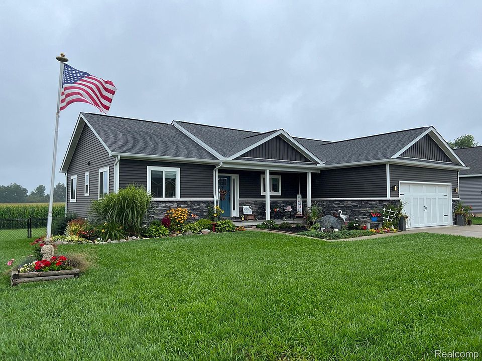 This home is better than new, she is the cleanest home on the block. Sellers had this one custom built with lots of extras installed, wood or gas fireplace in living room, upgraded cabinets with granite counter tops, ceramic & high quality wood flooring. It has an open floor plan with vaulted ceiling in Kitchen & Living rooms, walkout from Primary bedroom to oversized backyard deck. The backyard is fenced for your pets and backs up to the open farm fields. The basement has an egress window & plumbed for additional bath and or wet bar for entertaining family events!