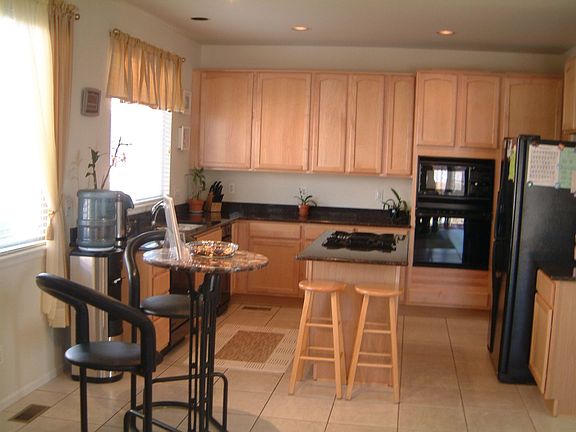 This model home was built in 2001 by Joyce Homes. It is 2,619 sqft with 3 bedrooms + loft, study & 3 bathrooms. The kitchen has slab granite counter tops & sleek black appliances. This home also includes a washer and dryer, vaulted ceilings, 3 car garage & a park-like backyard. Vaulted ceilings, gas fireplace, A/C, sprinklers, fenced back yard. Cul-de-sac. Tile floors in the kitchen. Unfinished basement for storage. Available June 1, 2014.