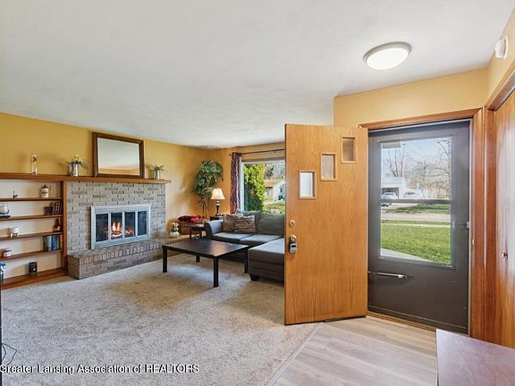 Absolutely delightful 3 bedroom ranch nestled conveniently close to Lake Lansing Road and major highways, offering shopping, dining, and recreational options right at your fingertips! Newer features include updated windows, flooring, carpeting, and cabinet hardware. Spacious kitchen complete with a center island, while the cozy fireplace in the living room sets the perfect ambiance for relaxation and gatherings. Full basement offering endless possibilities for extra living space, add your personal touch! Step outside to the delightful fenced backyard.