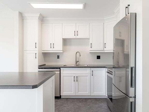 Looking over centennial parkBright open-concept living spaceCozy fireplaceStylish kitchenQuality wood cabinetry