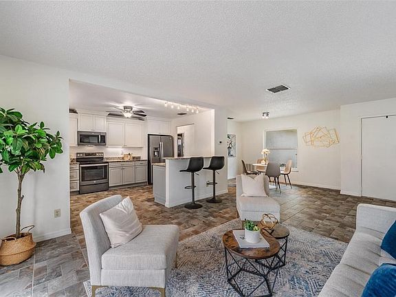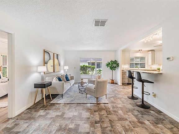 Under contract-accepting backup offers. Beautifully updated and move-in ready, this 2-bedroom, 2-bath, 2-car garage home is nestled in Palm Harbor’s premier 55+ golf community, Highland Lakes. From the moment you arrive, you’ll appreciate the lush landscaping and welcoming curb appeal. Step inside to a light and open floor plan featuring a spacious living and dining area that flows effortlessly into the fully updated kitchen. The kitchen showcases granite countertops, soft-close cabinetry, stainless steel appliances, and a breakfast bar, perfect for casual dining or entertaining. The adjoining dining nook offers a sunny spot to enjoy morning coffee. Both bedrooms are generously sized, with the primary suite offering a beautifully updated en-suite bath complete with a sleek vanity, modern fixtures, and a glass-enclosed walk-in shower. The second bath has also been tastefully remodeled with neutral finishes and a quartz countertop. Additional highlights include wood-look tile flooring, a spacious walk-in closet, an indoor laundry room with extra shelving, and a screened lanai overlooking the peaceful backyard, ideal for relaxing with friends or enjoying Florida’s year-round sunshine. Recent updates include impact windows (2023), roof (2019), Centricon termite system, and updated bathrooms for peace of mind and style. Ideally located near award-winning Gulf beaches, top-rated restaurants and shopping, world-class healthcare, major sports venues, and two international airports, this home offers the perfect combination of comfort, convenience, and resort-style living.Highland Lakes provides numerous amenities, including three Executive 9-hole golf courses, a Clubhouse with a heated Olympic-size pool and spa, tennis courts, bocce, pickleball, shuffleboard, and fitness classes. Residents can engage in various clubs and social events, or unwind by the pool at the Lodge on Lake Tarpon, or explore the Pontoon Touring Boats. Schedule a viewing today to experience this beautiful home!