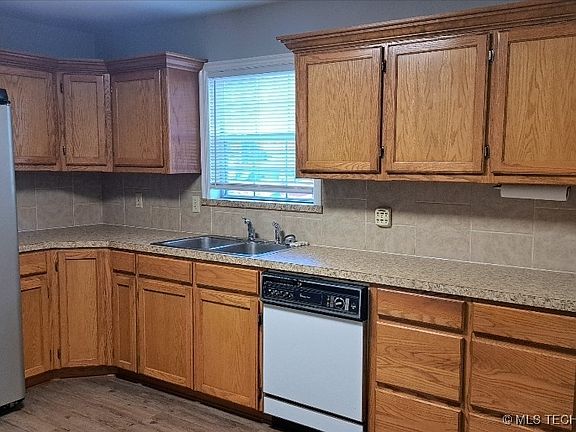 Cute updated 2 Bedroom, 1 Bath Home. New Metal Roof, New Mini Split, & New Shed. Beautiful redone original wood floors in the Nice sized Living room open to Kitchen which has custom oak cabinets. The stove, dishwasher, fridge and stackable washer and dryer remain. There is a fenced area in back yard for your pets! Brand new Deck/Porch and covered carport. Don't miss out. Being sold AS/IS WHERE/IS Surface Only-No Minerals to Convey