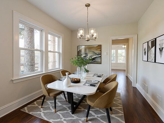 Welcome home to this beautifully remodeled golden octagon brick bungalow offering 5 bedrooms and 2 full updated bathrooms. Enjoy a spacious living room with hardwood floors and an open dining and kitchen combo designed for everyday living and entertaining. The custom kitchen features 42" cabinets, solid surface countertops, stainless steel sink, and stainless steel appliances. The finished basement with a full bath and two entrances provides flexible space for family, guests, or a home office. An open attic with flooring and high ceilings offers great potential for future expansion. Recent updates include a new furnace, new hot water tank, central air, and double-pane windows. Complete with a fenced yard, 1.5-car garage, and side apron parking, this home is move-in ready and full of possibilities.