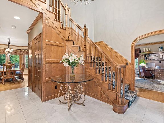 Located in highly sought after Chadwick Greens subdivision. This stately home greets you with a two story sunlit foyer adjacent to a Living Room/Study. French doors connect to Family room w beamed ceiling & fireplace. Formal Dining room w & butlers pantry leads into a large kitchen w granite counters, center island, abundant cabinets. Large dinette w French doors to deck area; Hardwood floors & beautiful crown moldings throughout. Dual stairways to the upper level boasting high ceilings; Skylights; Jack & Jill bath & ensuite. Luxurious primary suite w vaulted ceiling, fireplace. Updated Bath with his/ her vanities; Whirlpool & shower; A 14x12 fabulous designer closet dressing area was added (5th BR). The lower level is finished w Kitchen, Rec room, Fireplace, Full bath & game room.
