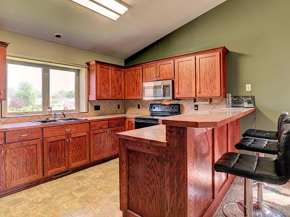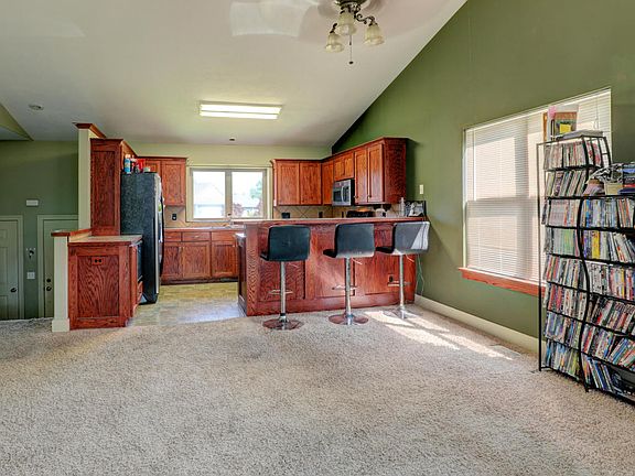 Four bedroom two full bath, double stall w extra storage area attached garage. Open Concept(Cathedral Ceiling)Living, Dining, Kitchen area with glass sliders to wood deck. Lower level has glass sliders from large (13 x 25) recreation/family room to cement patio and spacious rear yard.