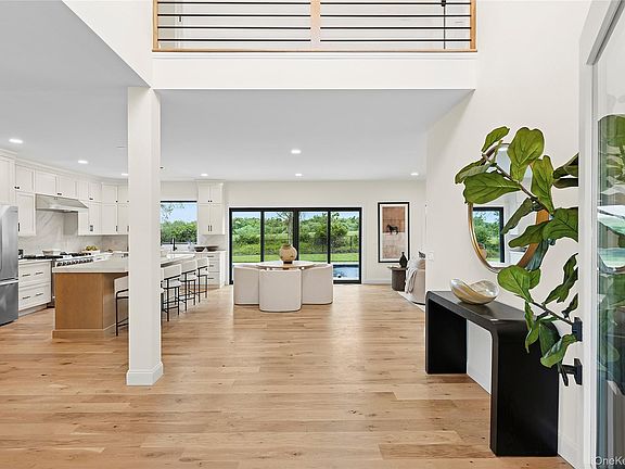 Price Improvement and a fantastic investment that will yield countless priceless memories and financial gain. This ultra-custom residence, which is both furnished and finished, is literally a one-of-a-kind new construction home and boasts 4 bedrooms and 3.5 baths. The CO was just received, and it includes municipal approval to accommodate seven full bedrooms and additional bathrooms! This brand-new floor plan design, which has never been built before, represents the last chance to purchase in the otherwise sold-out Oasis at Mattituck development. Nestled on just shy of 1 acre of manicured land, and just moments from the pristine, residents-only Breakwater Beach and Mattituck Inlet Boat Launch, the residence is turnkey and dripping with luxury. Maibec Eastern White Cedar dipped shingle exterior, a three car side entry garage an expansive wrap around porch, a dramatic open-concept first floor plan with 6-inch-wide plank white oak floors which creates a soaring entry foyer, a bespoke chefs level kitchen, a Cambridge quartz island with designer 2.5” mitered edge paired with a gorgeous full-height backsplash, double-stacked premium cabinetry and a professional grade appliance package, and very attractive high end furniture -all designer selected and coordinated are just a few of the extravagant inclusions. The first floor also includes a spacious primary suite featuring a spa-worthy bathroom. The second floor has an additional spacious primary bedroom suite as well as large secondary bedrooms, each with a walk-in closet. The magnificent lower level, featuring 10 ft. volume ceilings, an outside entrance, and three egress windows, can be further customized with three additional legal bedrooms and bathrooms! The property's vast grounds are also extraordinary, as the backyard includes a 20’ x 40’ heated saltwater pool, a custom-designed masonry patio, and a built-in masonry fire pit, all of which overlook countless acres of open space. Will Not Last!