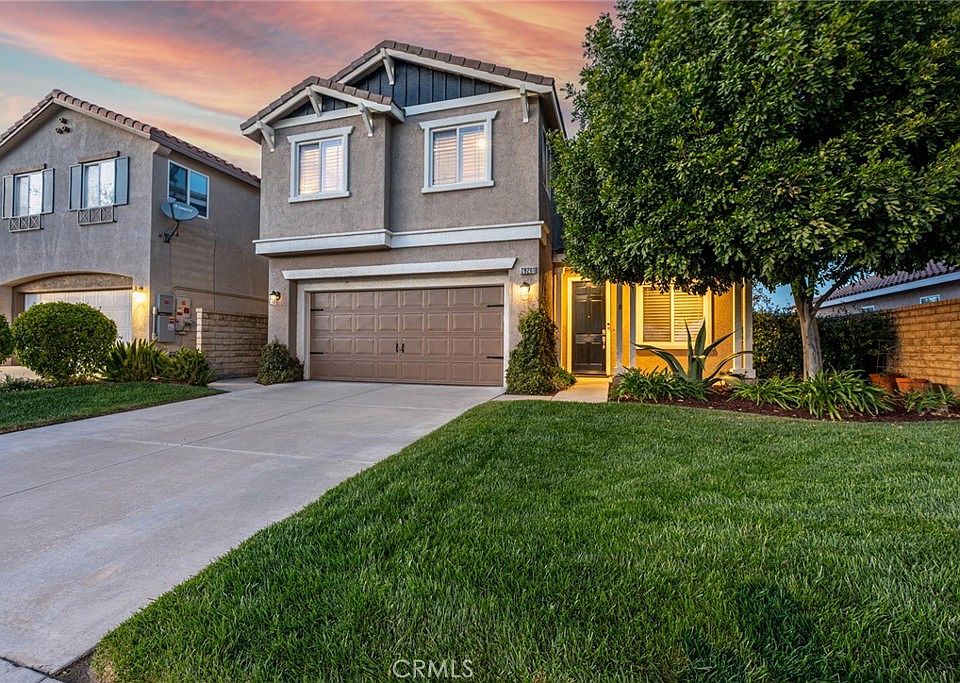 A finished two-car attached garage offers additional convenience, featuring overhead storage and a 220V plug for electric vehicles.