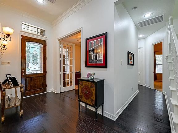 Welcome to this Trendmaker open floor plan home on oversized corner lot. Home features a island kitchen with SS Appliances, Granite, Tile, and walk-in pantry. Soaring ceilings. Large entry. Living Room features custom built-in wall unit. All bedrooms down. 4th bedroom converted to office w/french doors off entry - may easily switched back. Game room (432sf) upstairs w/full bath and walk-in floored attic adding more storage. Oversized Tandem Garage w/custom workshop. RECENT UPDATES include new 5 burner cooktop, new exterior and interior paint, wood floors, light fixtures, ceiling fans, kitchen/bathroom plumbing fixtures, more insulation, expanded irrigation, and professional custom closet organizers. Owner downsizing and will be selling new appliances as well as other beautiful furnishings. Nestled amongst trails, resort style waterpark, clubhouse, fitness center, and playgrounds. Zoned to Katy ISD. The home has been immaculately maintained by one owner with attention to detail.