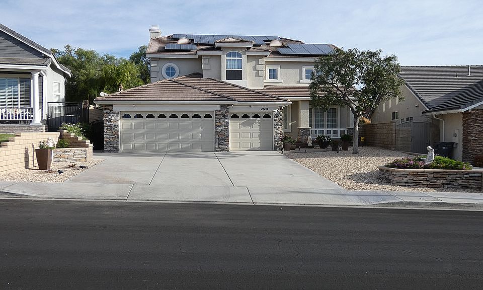 Modern open concept architecture with hardwood and tile floors throughout. Solid oak staircase, custom home office with wood cabinets and granite desk tops. Granite kitchen counter. Granite and travertine masterbath. Amazing landscaping front and back. Backyard with large pool and spa and BBQ island with granite and marble tile finish. Block wall fencing. 5.3KW solar energy system. Low irrigation landscaping throughout. Largest lot in the tract.