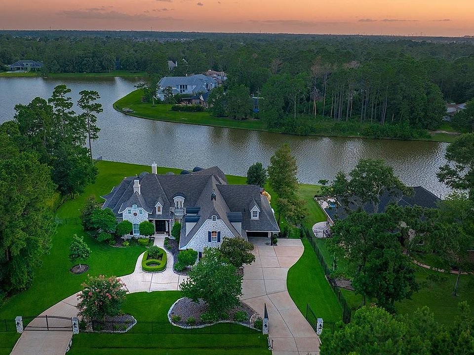 Experience waterfront living blended with flawless design in prestigious Bender’s Landing. This custom stone-and-cedar home welcomes you with a grand staircase and bespoke architectural details. The open floor plan offers stunning views of the lake and pool from multiple rooms. At the heart of the home, the gourmet kitchen features granite countertops, double gas ovens, an 8-foot mesquite island with prep sink, and integrated appliances. The luxurious primary suite includes a cozy fireplace and serene lake views. Updates include: 4 New HVAC systems with gas Furnaces, whole home generator, an elevator installed, water softener, water purifier, added built-in speakers in multiple rooms, fitness room equipped with mirrors & built in speakers, plus so much more! The guest suite offers a full kitchen and upscale finishes. The striking backyard offers a sparkling pool, outdoor terrace, and tranquil lake views—all perfect for entertaining or relaxing in style.