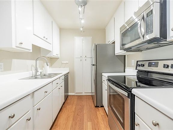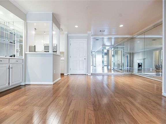 Modern task lightingHuge bright living spaceUpdated stainless steel appliancesGated entrance with attendantKitchen features white cabinetsBuilt-in dry bar