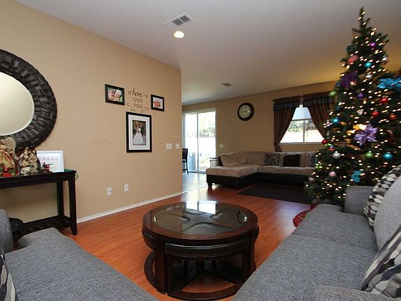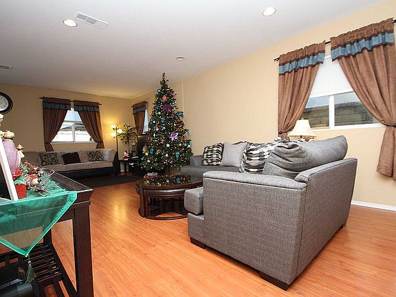 Can you say gigantic? That would describe the living room in this fantastic two story home. The dining area is open to the kitchen, with a peninsula that includes additional seating. And this spacious kitchen is sleek and clean. The sweet powder room is sure to delight. The upstairs loft is spacious enough to provide an additional family gathering space. The bedrooms are large and cheery. The guests full bathroom also boasts double sinks. The master suite is massive and the bathroom includes a large garden tub. and a separate oversized walk-in shower. The indoor laundry room is functional, clean and convenient. The back yard has block wall fencing, a grass yard, concrete patio slab and beautiful fauna in the surrounding garden bed. Don't miss out, this community also offers a playground, pool and spa, lush landscaping and much, much more.