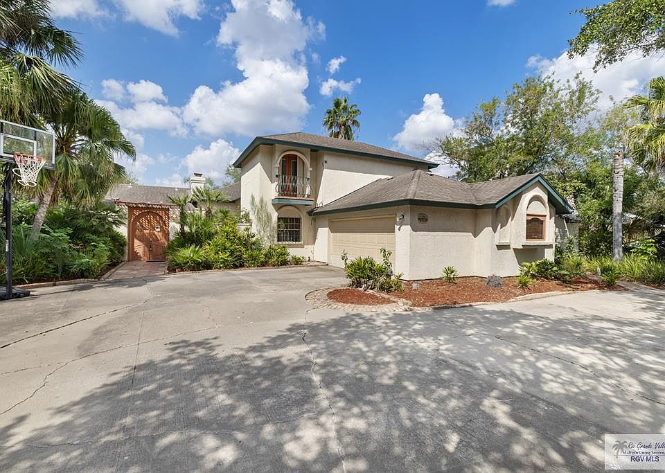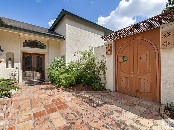 Enter this beautifully maintained 5-bedroom home through a charming courtyard featuring antique double wooden doors, a ceramic tile fountain, and a decorative ox cart. Step inside to a spacious foyer that opens into this two-story residence offering 3,899 sq. ft. of living space. The first floor includes a large master suite and private office, while three additional bedrooms are located upstairs. The inviting living area features a cozy fireplace, and the kitchen boasts granite countertops, stainless steel appliances, and a breakfast nook. A formal dining room and wet bar provide the perfect setting for entertaining. Outdoors, enjoy a sparkling swimming pool surrounded by lush landscaping and a guest house complete with a full exterior kitchen—perfect for gatherings with family and friends. Please contact Kenny Gonzalez 956-463-9100 for access or email Kenny@Kennygonzalezrealtor.com